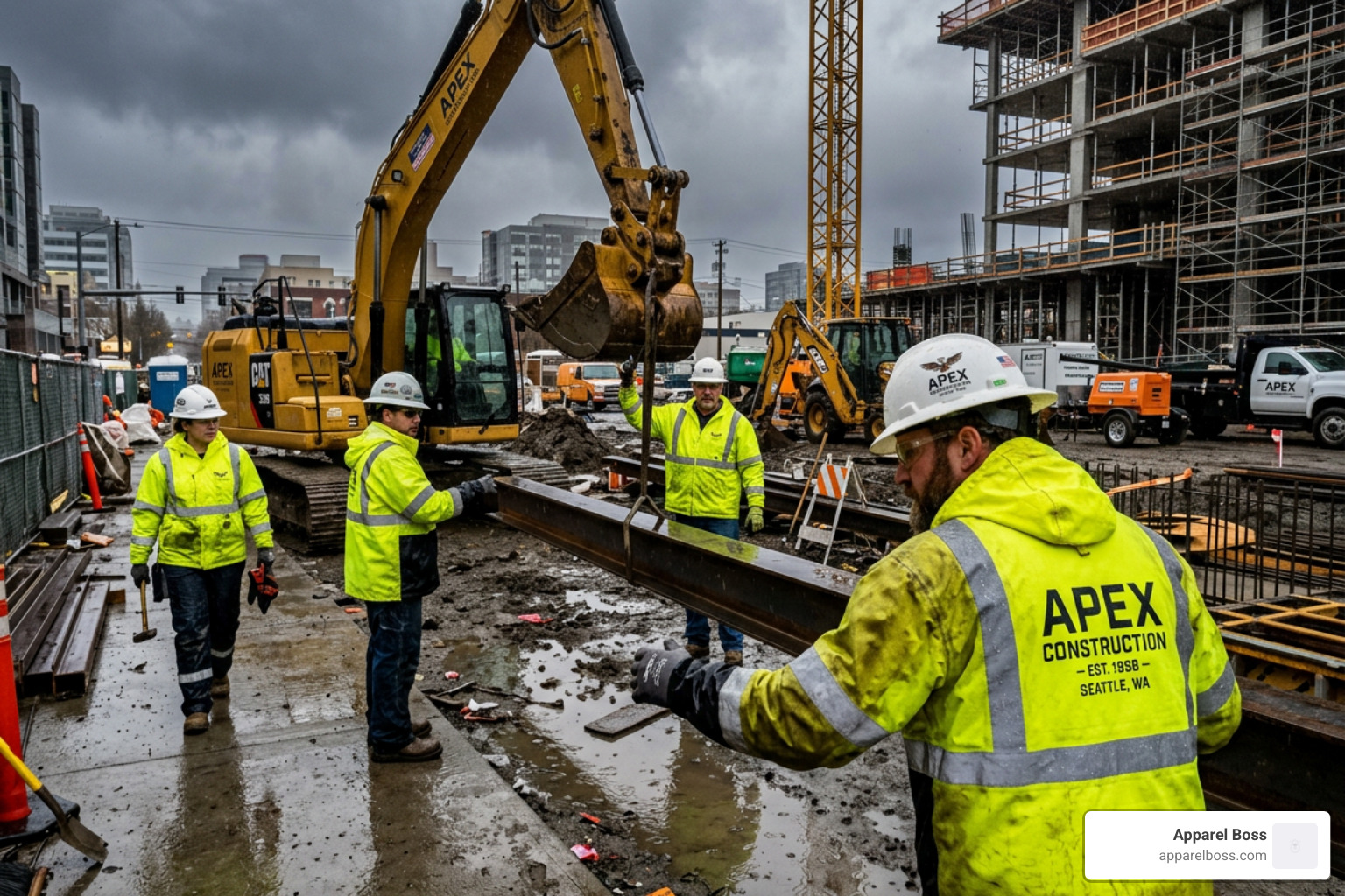But visibility alone isn't enough anymore. Companies are increasingly using branded hi-vis gear to also reinforce their professional image, unify their teams, and meet site security requirements. A jacket that keeps workers safe and carries your logo? That's a smart investment.