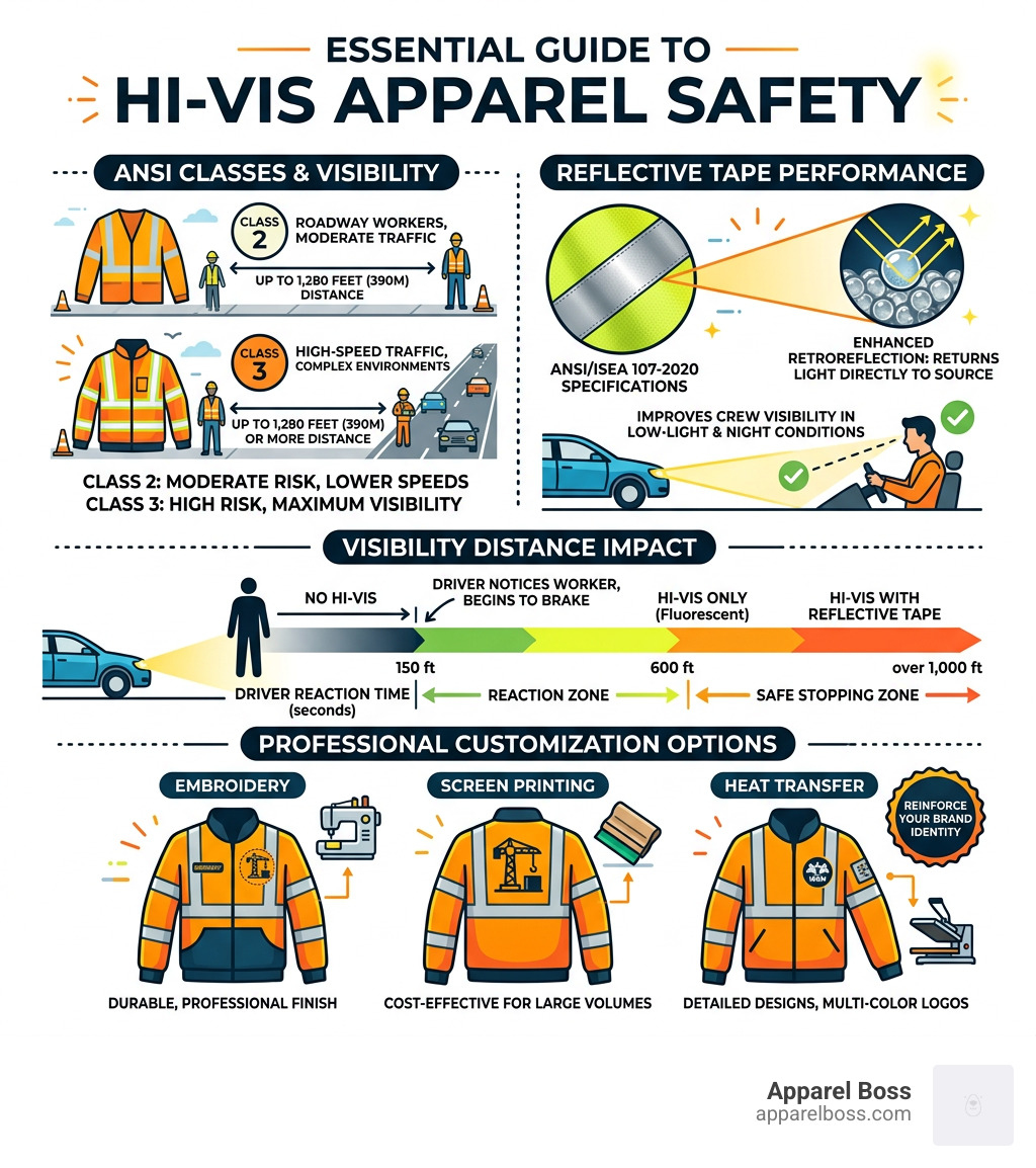 Hi-vis jacket custom logo options make it easy to keep your team safe, visible, and professionally branded — all at once. Here's a quick overview of what you need to know: